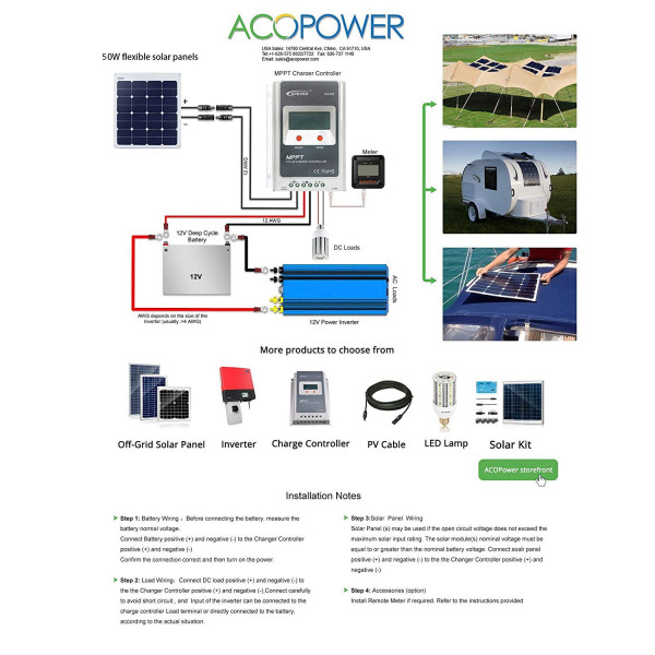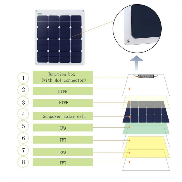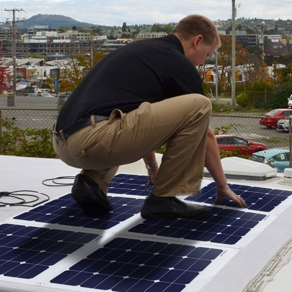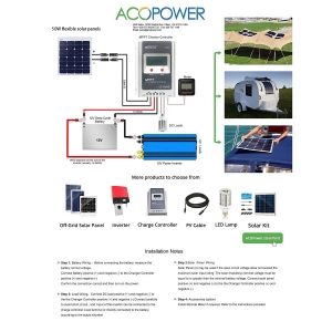 The ACOPOWER 55 Watt 12 Volt Light Weight Semi-flexible Solar Panel uses advanced SunPower monocrystalline cells that have been laminated into a thin plastic sheet. The result is a solar panel that is far more durable and efficient than traditional glass and aluminum models.