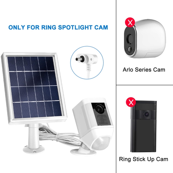 1. This solar panel is only suitable for Ring spotlight cam, don't apply to stick up cam or Arlo system cam which has a different connector.
