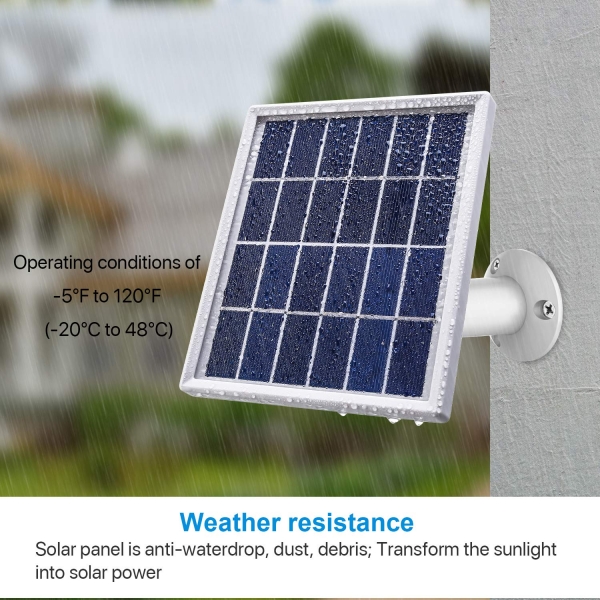 The solar panel can be set into multiple oblique angles which can decrease the dust and waterdrop to some extent, maximum to turn the sunlight power into solar power, provide energy for the cam.