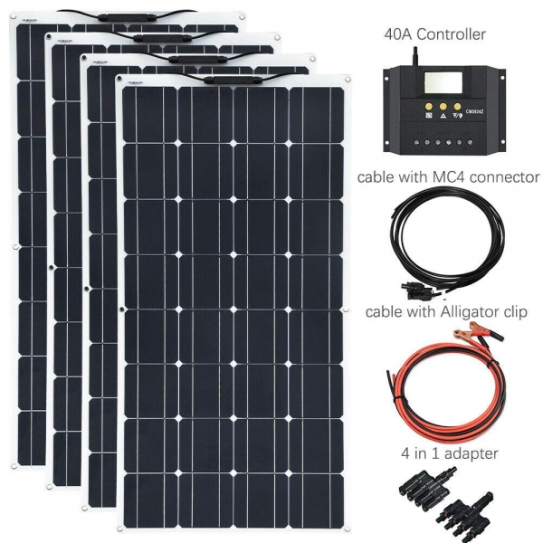 400W Flexible Solar Panel 4x100w Kits Solar Module Car RV Boat 40A Solar Charger